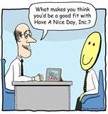 “Think on Your Feet” (and sometimes on your head) interviews. What is a “Think on Your Feet” interview, you ask? Well, remember the movie “The Running Man” (yes, with your good buddy and mine, Ahhhhnold), which depicted a sadistic game show in which criminals were hunted down by professional stalkers? Well, it’s not like that.